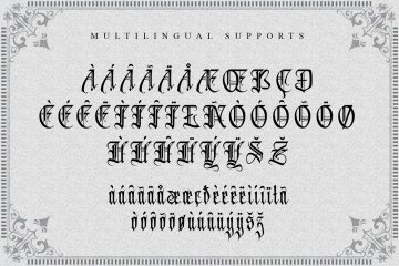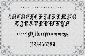是一款具有维多利亚黑体风格品味的字体,包括全套华丽的大写和小写字母、数字、标点符号、连字、任意连字、交替字符、多语言字符支持和额外的装饰,赋予写实的维多利亚黑体书法风格。