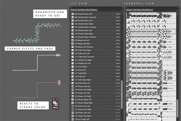 图穷联素材库 » 花卉线条的Ai笔刷 Flowers Stems Illustrator
