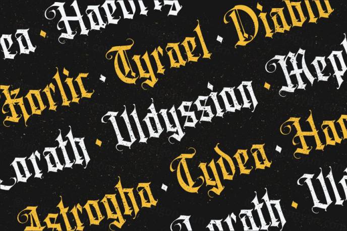 图穷联素材库 » 复古暗黑风哥特纹身图案英文字体 Ilhamtaro - Aortascarta