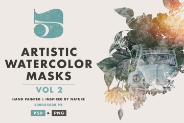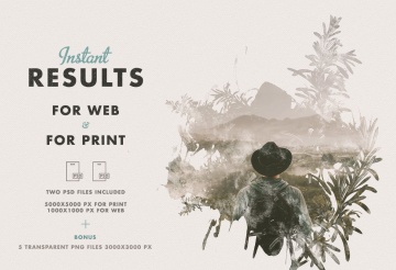 优雅水墨手绘水彩风格的双重曝光照片叠加效果图层
