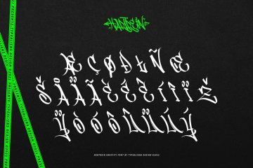 Hartrein 是一种具有都市艺术风格的字体,其基础是涂鸦字体,具有扁平标记的典型扁平形状。适用于现代城市艺术或街头艺术设计,也可用于喷漆品牌标志设计、标签等。