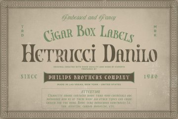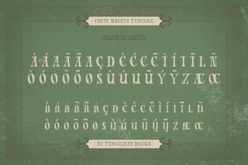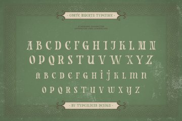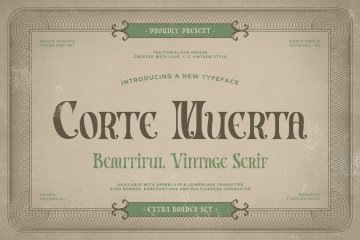 Corte Muerta 是一种非常独特的衬线字体,衬线字体的基本形式带有钩子,在某些字母中带有一些装饰,使这种字体与其他衬线字体不同。具有复古感,适合经典和复古设计。
