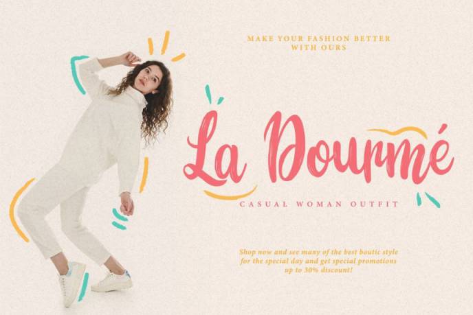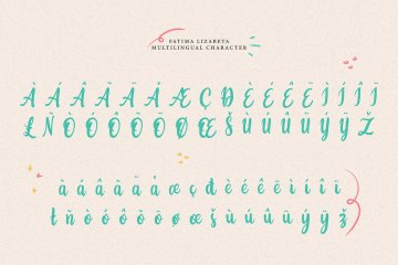 Fatima Lizabeta 是一种垃圾脚本字体,我认为这是一个很酷的术语,因为基本上它是一种使用笔刷效果的书法技术制作的脚本字体。它适用于时尚品牌的现代设计,包括社交媒体以及徽标和口号。