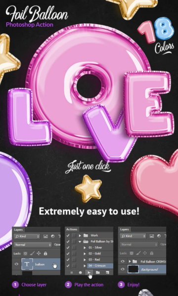 图穷联素材库 » 3D铝箔气球文本效果处理ps动作