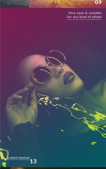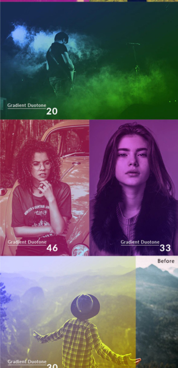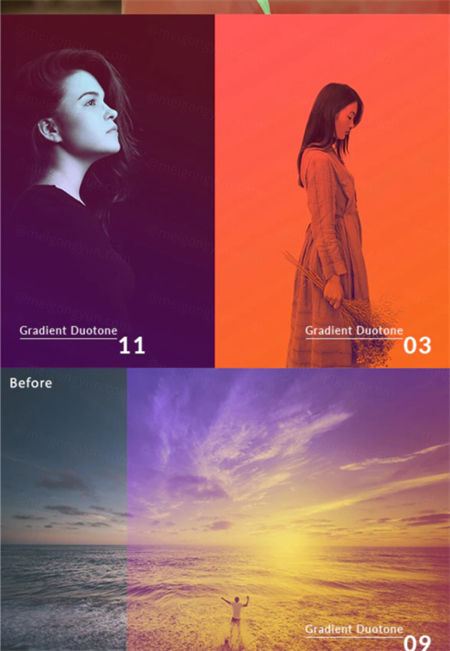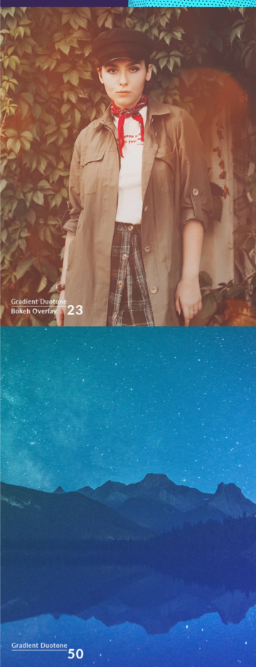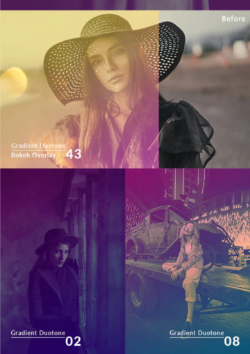 图穷联素材库 » 专业渐变双色调效果散景照片叠层ps动作套装