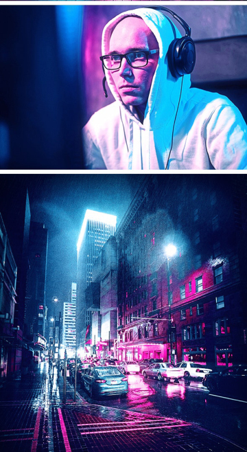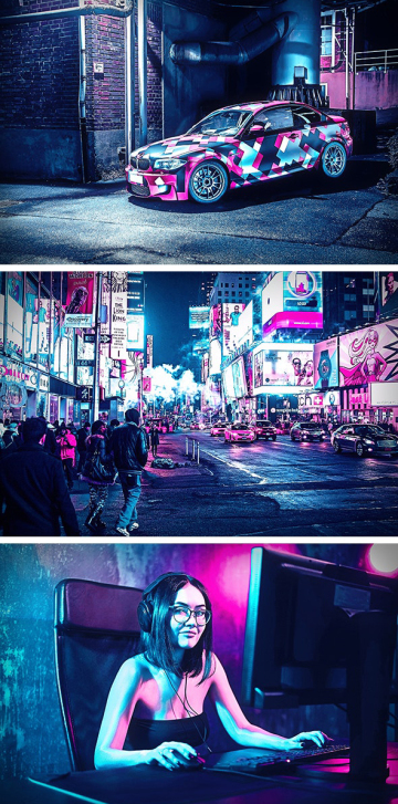 图穷联素材库 » 赛博朋克霓虹灯效果照片处理ps动作下载