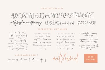 神话般的剧本:现代书法,笔直的外观。它带有 3 个重量(薄、常规和粗体)。所有字形、连字和替代字符都是 PUA 编码的。优雅的花饰融入字母中。该脚本具有所有必需的 Opentype 功能。只需在任何字母或 [ 前后 ] 后键入数字即可获得长行。