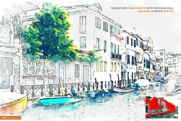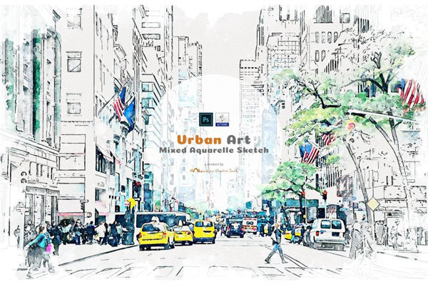 图穷联素材库 » 都市艺术-混合水彩画素描照片处理ps动作