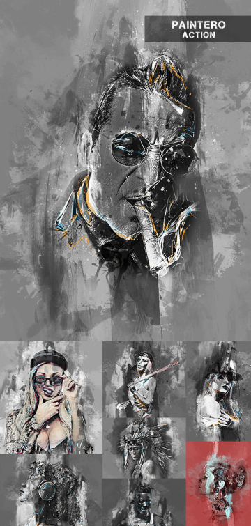 图穷联素材库 » 抽象现代艺术效果照片处理ps动作5合1套装
