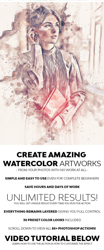 图穷联素材库 » 水彩艺术绘画效果照片后期处理ps动作