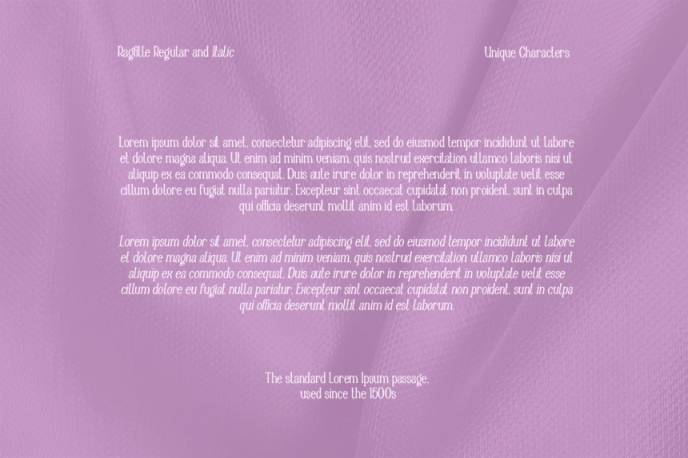 Ragfille 是一种优雅而时尚的衬线字体。它具有漂亮的现代风格和独特的角色,可以提升任何项目的外观!