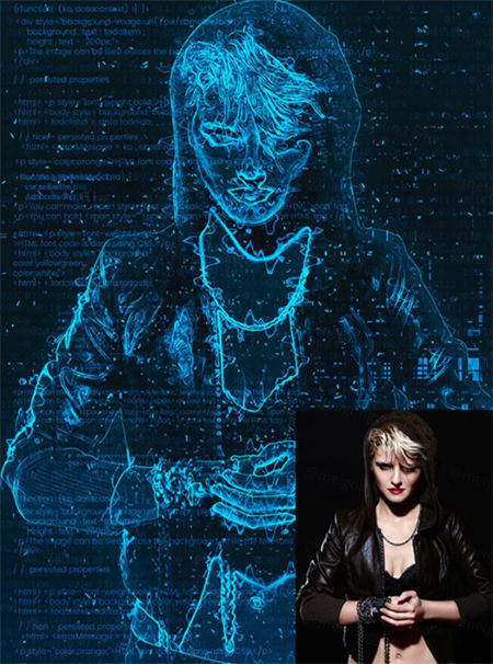 图穷联素材库 » 抽象科技黑客代码特效照片处理ps动作