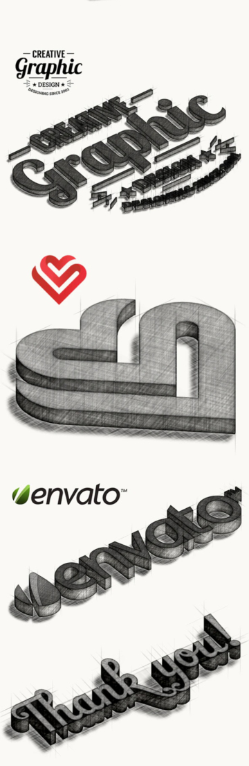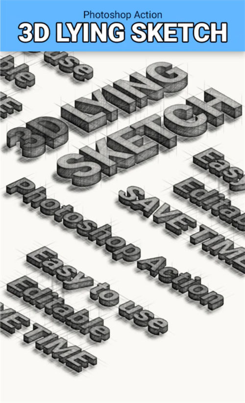 图穷联素材库 » 3D徽标文字铅笔素描效果ps动作