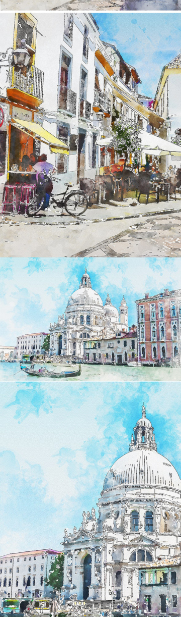 图穷联素材库 » 城市水彩画素描效果ps动作下载