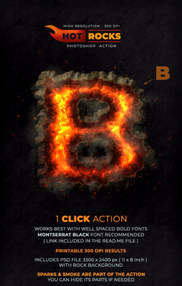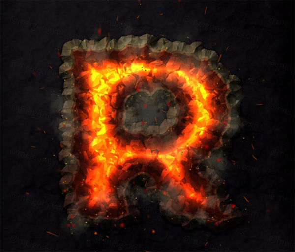图穷联素材库 » 高温火焰熔岩石文字效果ps动作