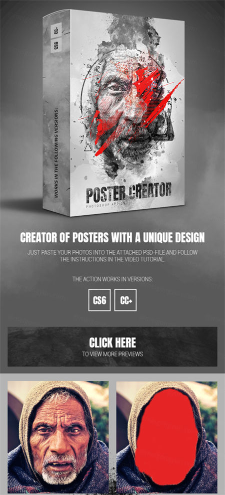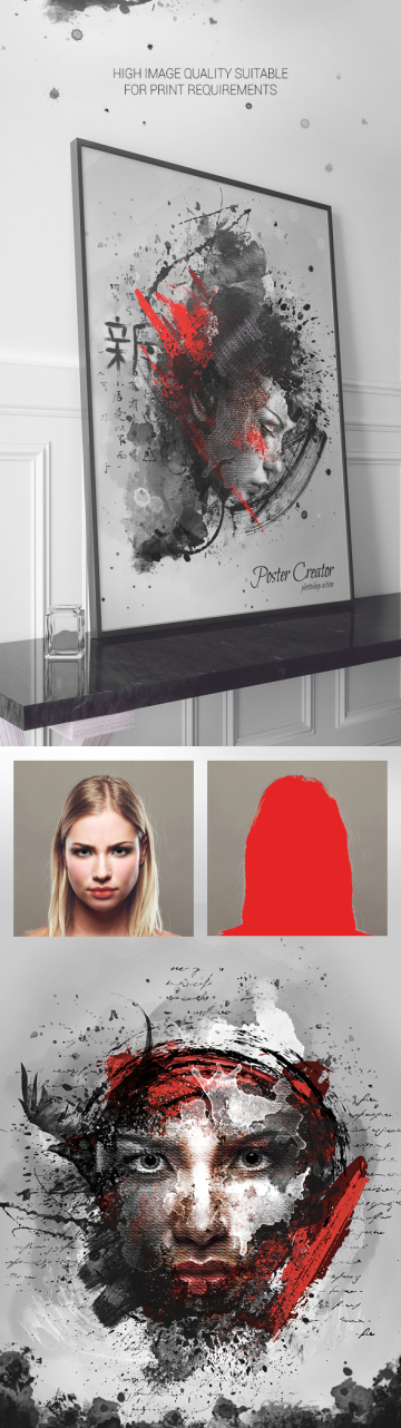 抽象墨水喷溅绘画效果人像照片处理ps动作下载