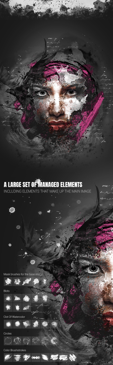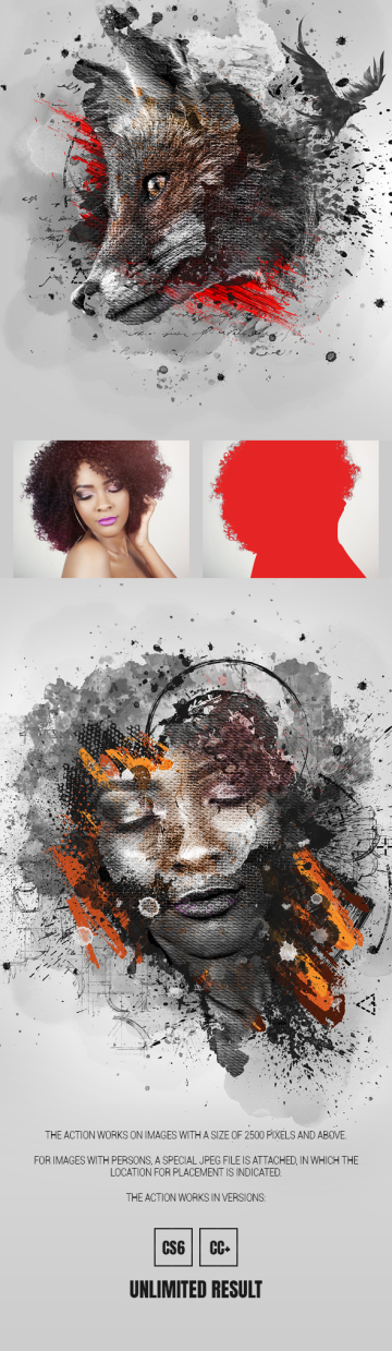 图穷联素材库 » 抽象墨水喷溅绘画效果人像照片处理ps动作下载