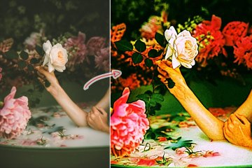 图穷联素材库 » 逼真的玫瑰色油画颜料效果照片处理ps动作