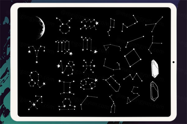 图穷联素材库 » 月亮和星星元素Procreate笔刷