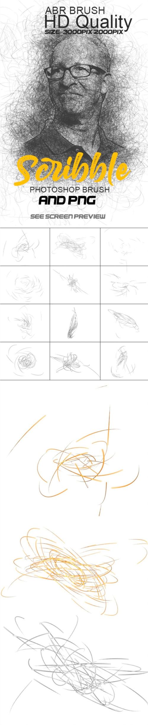 图穷联素材库 » 铅笔潦草乱涂风格Photoshop笔刷素材