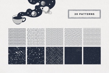 图穷联素材库 » 海洋漫游复杂形状轮廓笔触涂鸦墨水画笔无缝图案星空