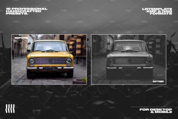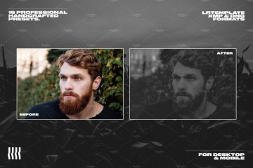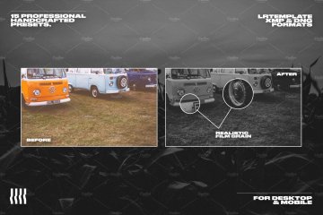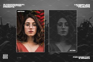这些预设将使您的图像具有电影般的,喜怒无常的艺术外观,并且像旧电影一样在其上添加一些逼真的胶片颗粒。