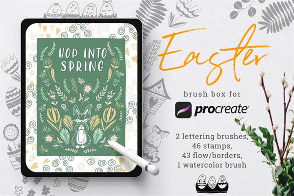 乐意介绍Procreate画笔盒,为复活节制作艺术品!这些邮票以异想天开的风格和手工绘制的质量制成。