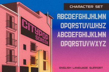 Citypop Digital:仍然是模拟到数字技术的相同氛围。但它有点新的感觉,当然,这种字体的无衬线色调将很好地涵盖这个城市流行主题的整个概念的多功能性。英语语言支持