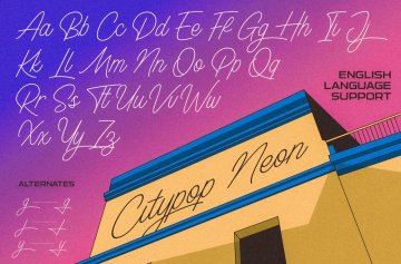 Citypop Automotive:受老爷车标志启发的干净而精致的豪华脚本字体。也非常适合标志、控制台和电子标志品牌,就像城市流行时代的运作方式一样。它包含一些简单的连字来塑造单词外观和仅英语语言支持。