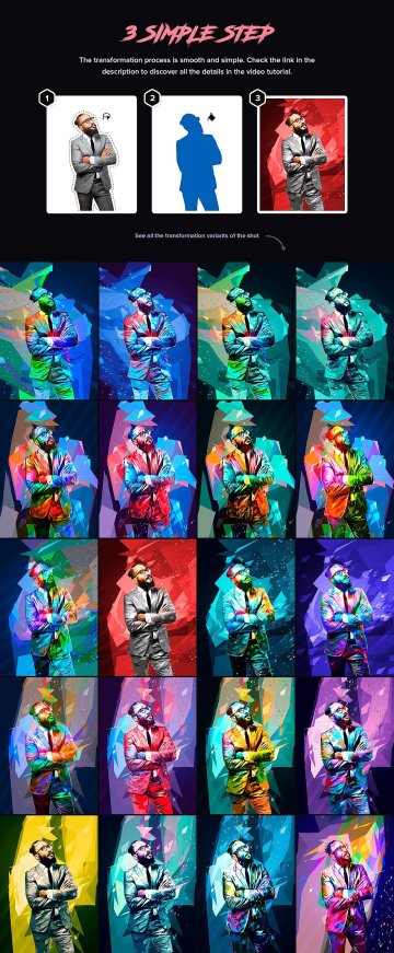 图穷联素材库 » 现代抽象几何低聚艺术效果照片处理PS动作 Color Fusion P