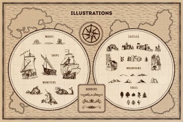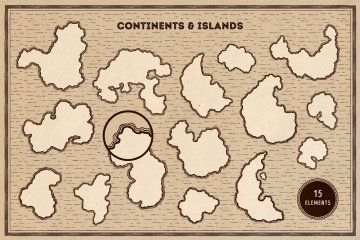图穷联素材库 » 老式复古仙境地图山脉数目建筑等航海地图制作工具包Magic Lands