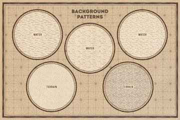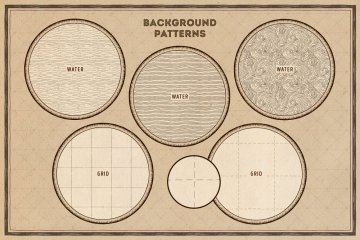 矢量和PNG中的15种无缝模式(水,土地,天空和地图集网格);
