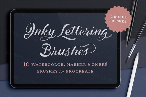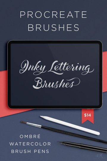 水彩笔标记笔油漆笔刷 for Procreate Inky Lette