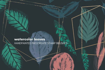 高分辨率水彩邮票笔刷几何金箔形状素材 watercolor leave