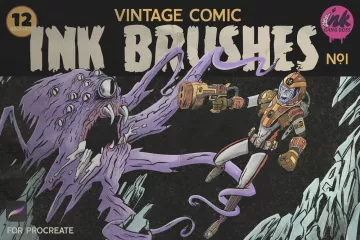 图穷联素材库 » 老式复古的漫画风墨水画笔Procreate笔刷素材 Procreate