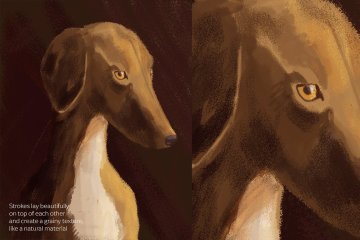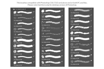 干介质笔刷具有独特的画布,颗粒,混乱纹理,可让您快速绘制任何插图。只需一笔,即可获得阴影或光线的美丽粒状纹理。