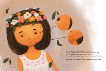 使用高分辨率的纹理和笔触创建画笔。它们非常适合绘制任何插图,尤其是儿童读物。刷子易于使用,并且为此套装精心挑选。观看下面的视频,看看这些刷子是如何工作的