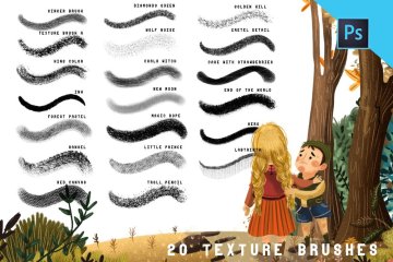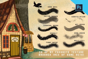 图穷联素材库 » 30种儿童故事书风格PS笔刷纹理素材 Storybook studio
