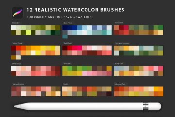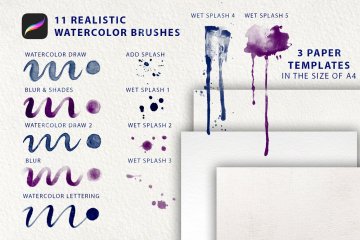 图穷联素材库 » 有趣的数字写实水彩画Procreate画笔套装素材 Watercolo