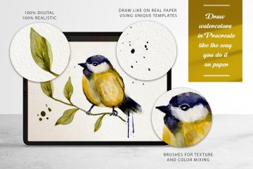 有趣的数字写实水彩画Procreate画笔套装素材 Watercolo