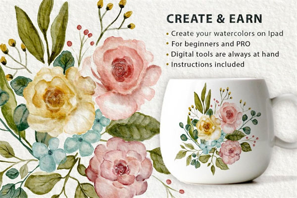 在Procreate中轻松,有趣地为自己或出售创建华丽逼真的数字水彩画!