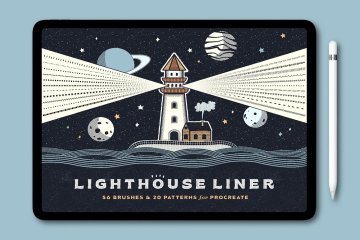 图穷联素材库 » 复古风灯塔海浪记号笔钢笔铅笔墨水笔刷素材 Lighthouse Lin