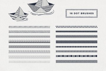 56个Procreate画笔(10个墨水,30 pat和16个点画笔);
