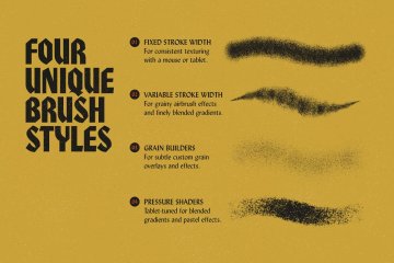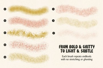 Grain Shader Brush Set 具有多种真实纹理可供选择,非常适合添加从大胆、粗糙的阴影和阴影到微妙的斑点口音和精细的纹理叠加的所有内容。