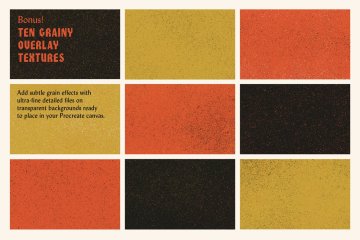 透明背景上 .png 格式的 10 x 粒状叠加纹理准备导入您的 Procreate 画布。