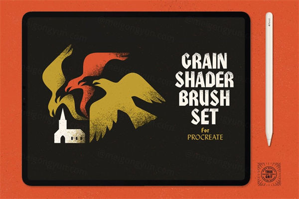 使用 GRAIN SHADER BRUSH SET 为您的作品添加深度、纹理、阴影和形状,30 支用于 PROCREATE 的超阴影纹理刷。