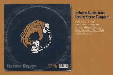 奖金!易于使用的磨损唱片套 PSD 模板,具有 17 种不同的纹理变化,允许数百种纹理组合。