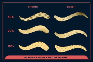 使用这款完美的 Procreate 半色调画笔套装(包含 18 个半色调画笔),为您的插图带来引人注目的触感。