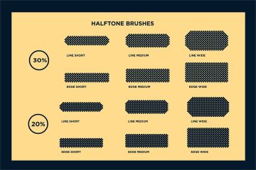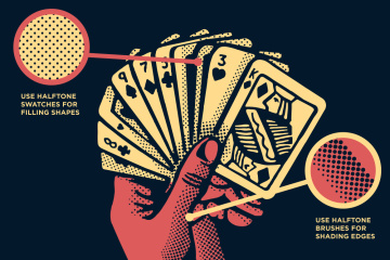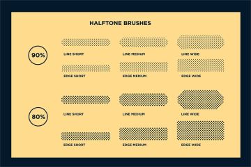 80 多种适用于 Illustrator 的半色调画笔和色板可为您的插图提供完美的半色调图案。