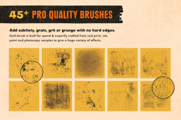 这些画笔由真实世界的纸张、墨水、油漆、碳粉和复古印刷样品定制而成,可让您在几秒钟内为您的作品添加纹理。使用单个画笔在瞬间创建微妙的叠加和沉重的垃圾,或组合多个画笔以创建自定义组合。该套装与您会发现的多合一纹理套件非常接近。